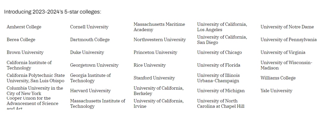 获得5星评级的34所大学包括公立大学、常春藤盟校、文理学院等。除了我们耳熟能详的名校之外,还有一批教育质量高且普通学生真正负担得起的学校显现了出来。一起来看下,《Money》最新的评级制度是怎样的,以及作为读者我该如何使用它。