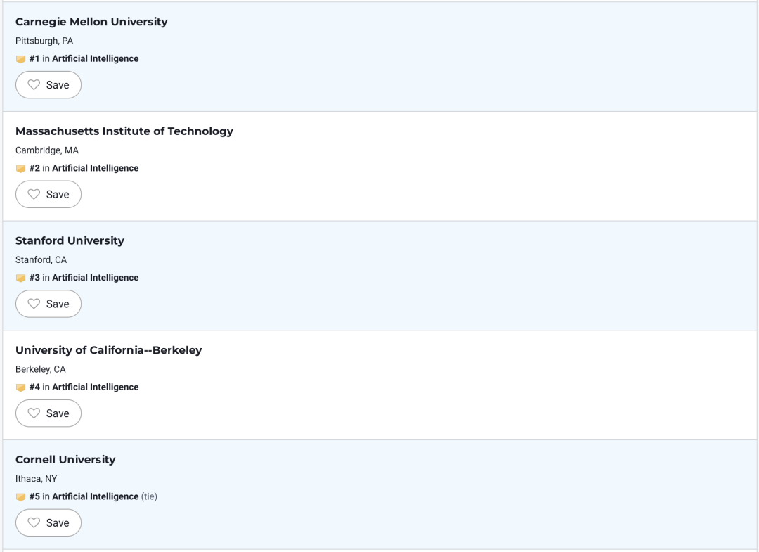 来源:https://www.usnews.com/best-graduate-schools/top-science-schools/artificial-intelligence-rankings?_sort=rank-desc