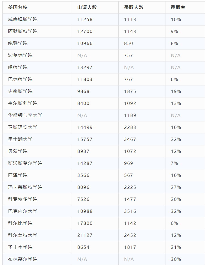 转载说明:文章《美国本科留学文理学院热门大学最新录取率一览》由【岸帮留学】原创发布(部分转载内容均有注明出处,如有侵权请告知),转载请注明文章来源。
