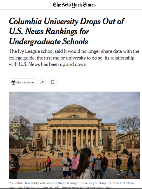 美国藤校哥伦比亚大学宣布退出USNews排名!退群保平安?