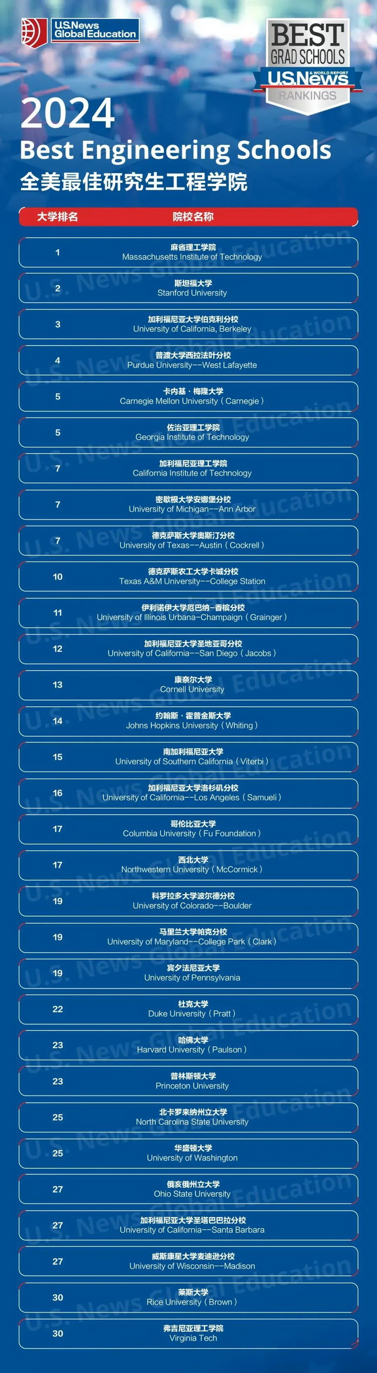 美研留学2024USNews最佳研究生院校新鲜出炉