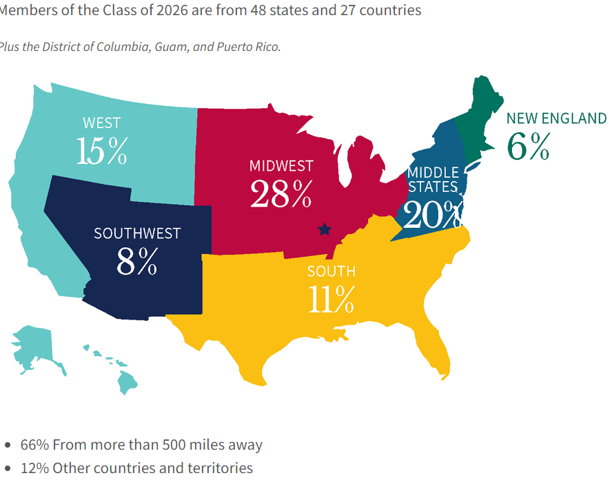 该校在去年12月14日的一篇新闻稿表示ED1轮次共收到约2,000份入学申请,其中700名学生获得录取;此外,还有75名学生通过QuestBridge项目匹配至圣路易斯华大。