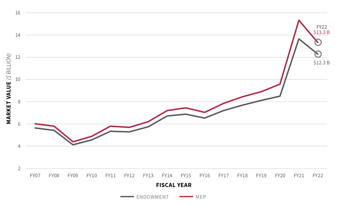 在21财年获得创纪录的65%超额回报后,圣华大捐赠基金在22财年回撤约10%,但其规模依然超过130亿美元