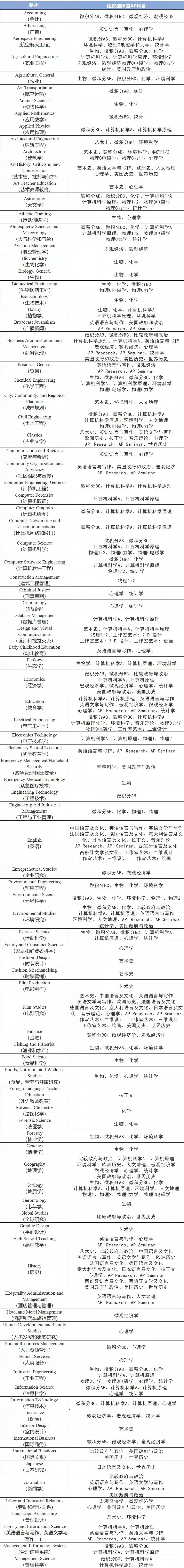 转载说明:文章《美本留学不同专业应该选择哪些AP科目?CB官方建议》由【岸帮留学】原创发布(部分转载内容均有注明出处,如有侵权请告知),转载请注明文章来源。