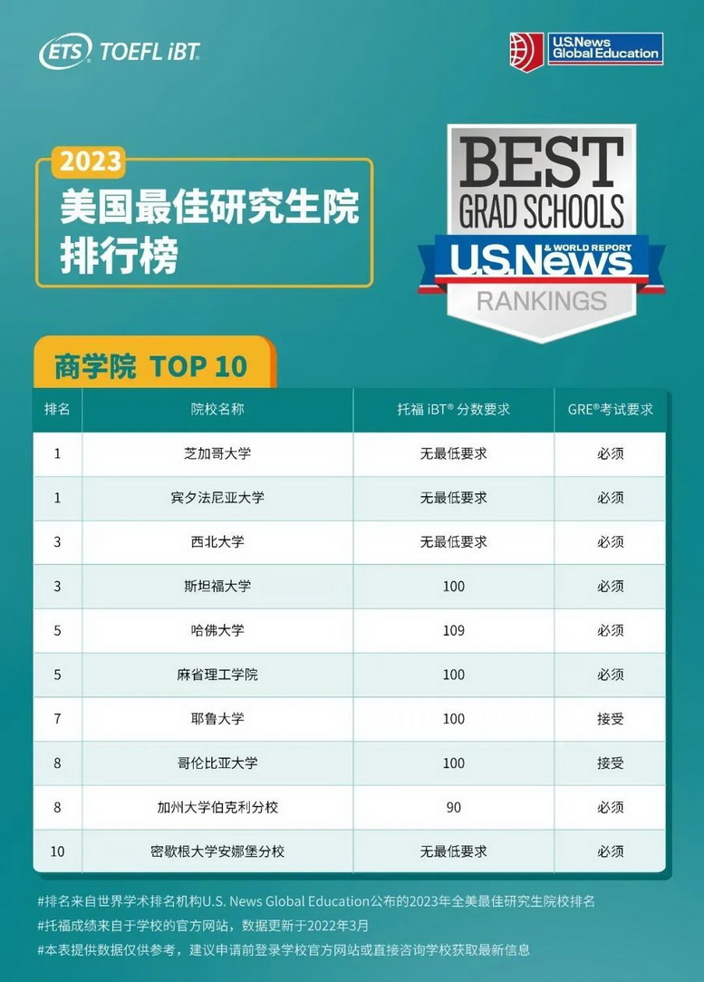 近日ETS官方对商科、教育、工程、法律、医学、护理、公共事务等热门专业Top10院校的GRE和托福成绩要求作了统计汇总,这里我们就一起来看一下。