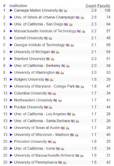这一排名方法在一定程度上反映了全球高校和研究机构在计算机学科和相关方向上的学术影响力和国际活跃度,相对于传统的基于论文引用量排名方法,会更能体现出院校在计算机科学领域的实力水平以及师资力量。
