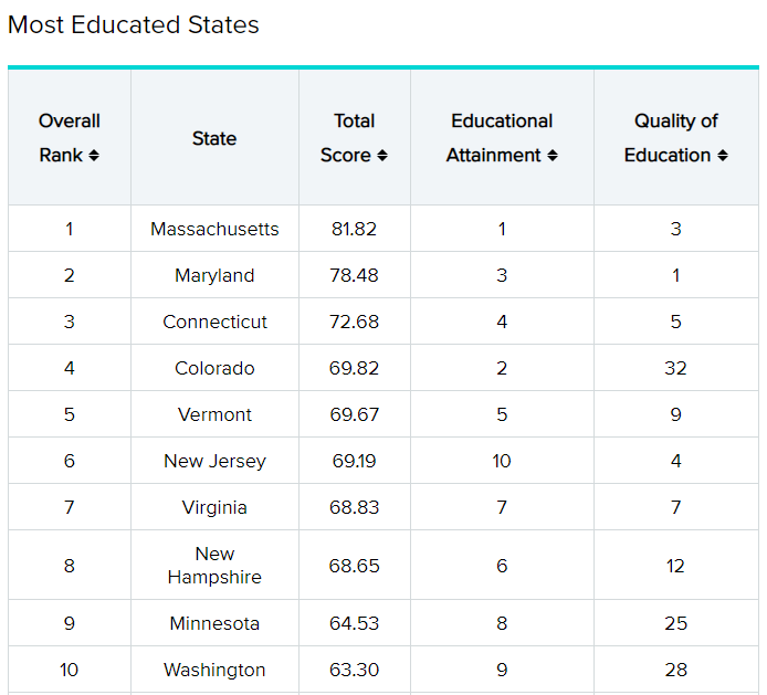 当然麻州获得第一名可不是空穴来风,据WalletHub的调查数据: