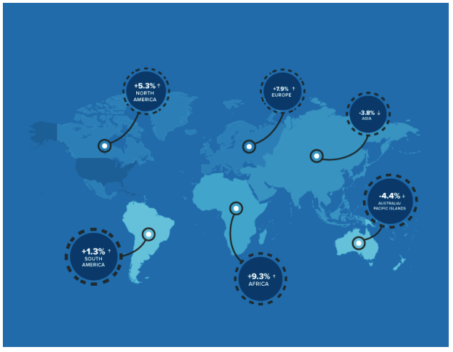 值得一提的是,2021年各国家/地区赴美人数的变化趋势出现分裂:亚洲、欧洲、澳洲学生人数比上一年下降,而北美、南美、非洲学生出现上升。