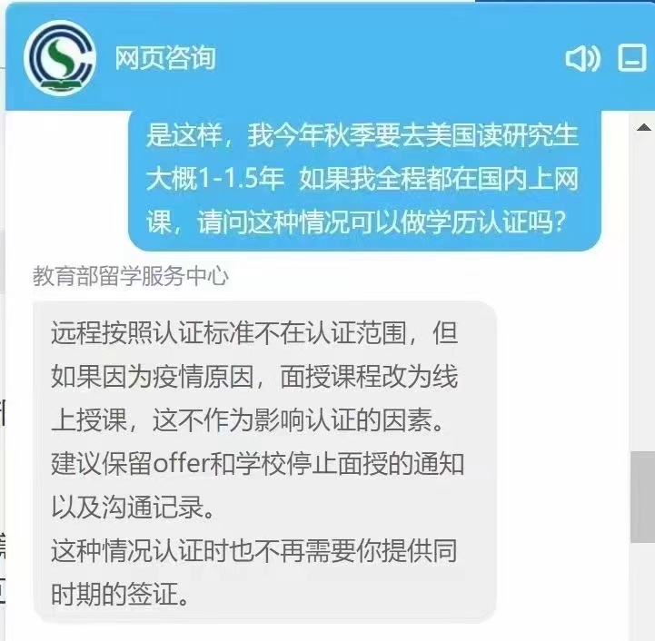 不过正常的留学生是不用担心的。已经有学生打电话问过留服了,这个通知主要是针对那些本身就是online获取学位的项目。如果你的项目是full time in person获取学位的在疫情下选择网课是没问题的,只要保留学校开展网课的证据就可。对于开展双轨制同样不影响认证的,因为开展双轨制的前提是有疫情影响,海外学生可能没法到留学地上课,符合认证标准,是没问题的。