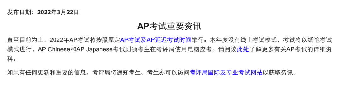香港考评局官宣AP没有线上考!CB重申课程的意义 近日中国香港HKEAA考试局公布了关于2022年AP考试的最新消息,直至目前为止,2022年AP考试将按照原定AP考试及AP延迟考试时间举行。...