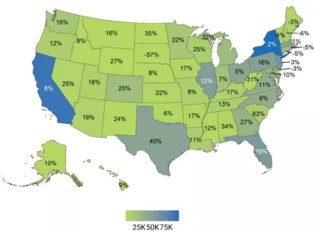 从地域上看,与2019-2020年的申请季相比,2021-2022年的申请季佐治亚州学生出现63%的暴增,其次是德州,申请人数增加了到40%。这也是由于佐治亚大学、德州大学等启用Common App申请系统所致。