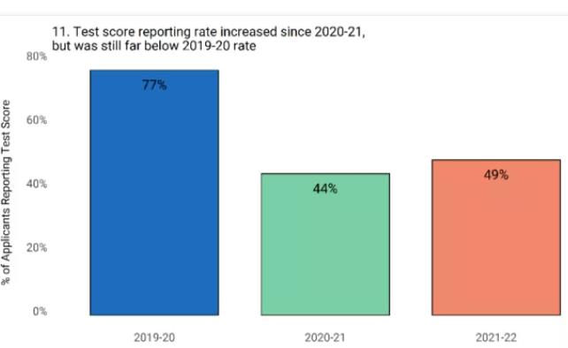 标化成绩有将近一半的人提交,对比疫情前(2019-2020)的数据,虽然下降,但是还是有很多人比较重视。