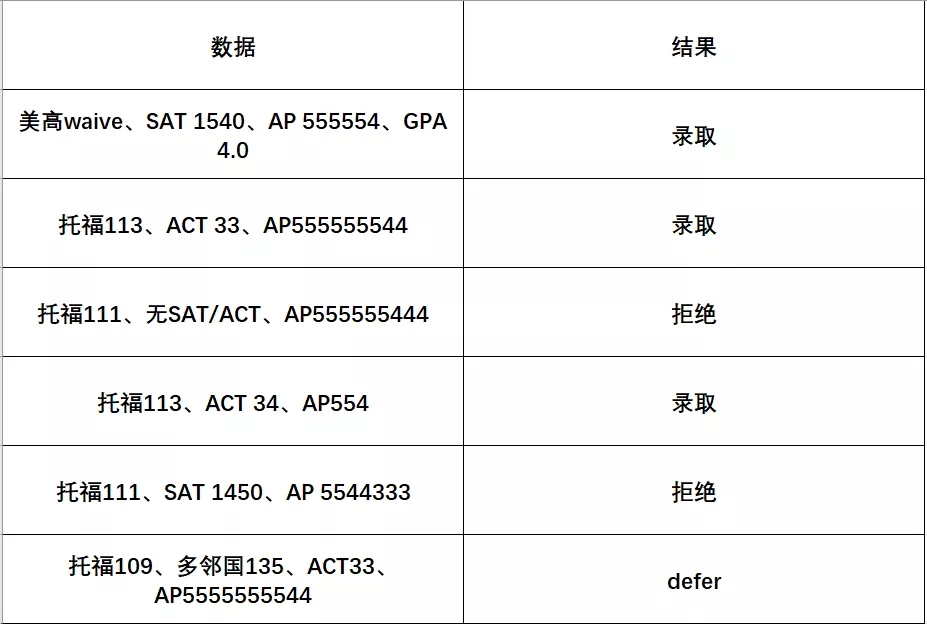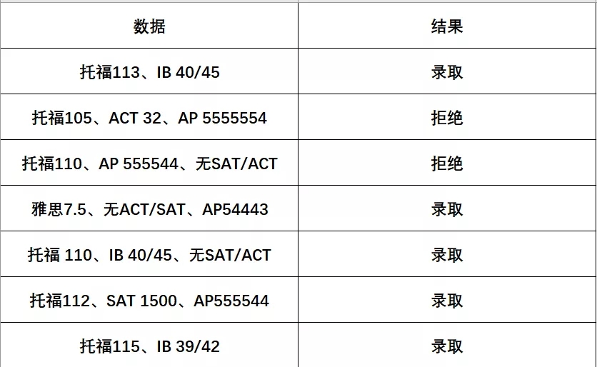 近期的放榜,总体来说,除了JHU,大部分学校都是比较友好的。从不完全统计数据可见,标化考试有SAT/ACT和没有这些考试,在其他标化差不多的情况下,学校还是会倾向录取有SAT/ACT的同学。