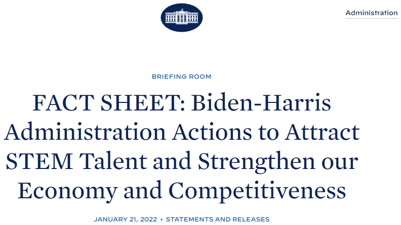 为了吸引和留住这些人才,拜登政府也采取了一系列措施,比如1月份发布了STEM新规,其中就包括方便STEM领域人才获取O-1A签证、STEM领域J-1签证期限延长等措施。