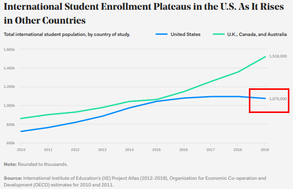 美国虽然仍旧是留学生心中的圣地,但是由于签证等原因毕业之后能够为美国经济做出贡献的人才却少了许多。