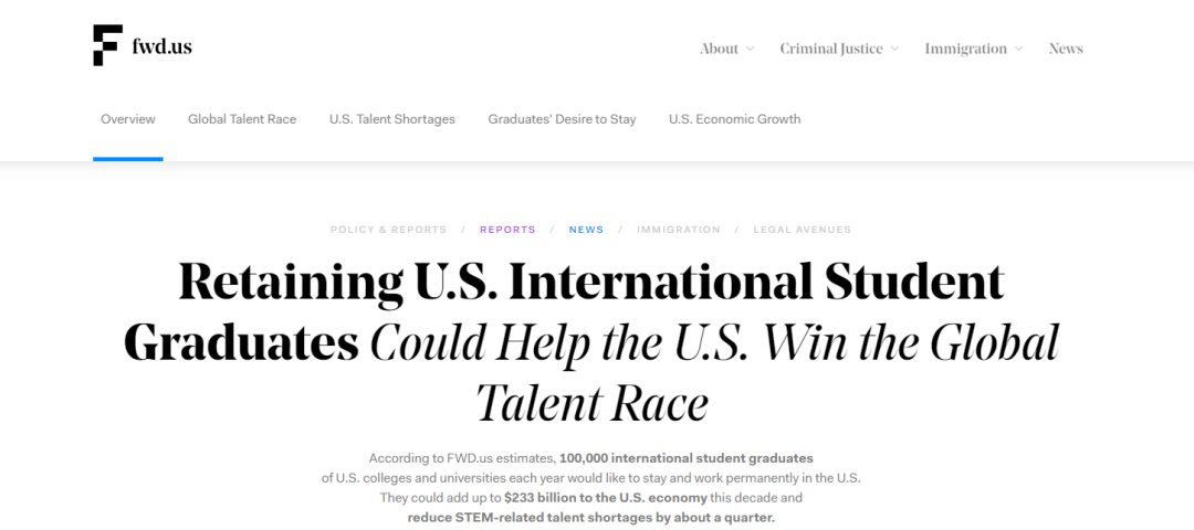 FWD.us认为:美国将体会到在国际竞争中人才短缺的痛苦。
