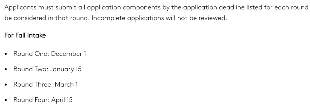 申请截止日期:2022年3月1日(第三轮,国际学生建议截止日期);2022年4月5日(第四轮)