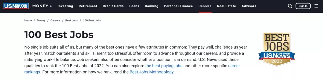 选对专业比选校更重要!U.S.News发布2022最佳职业排名