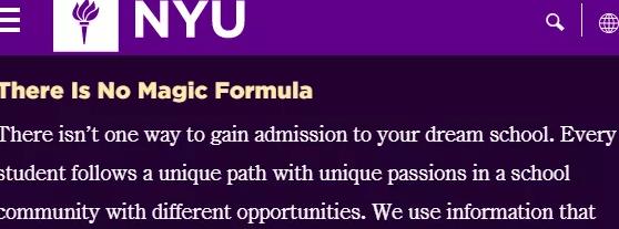 纽约大学招生助理主任David Kerman在回复家长“如何在申请中脱颖而出”时提到:成功没有模板,没有哪一种固定的模式可以保证你被梦校录取。每个学生都应当跟随着自己的热情,在学校和社区提供的各种机会中,走着一条属于自己的路。