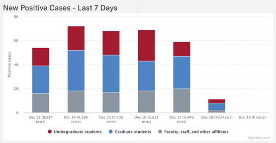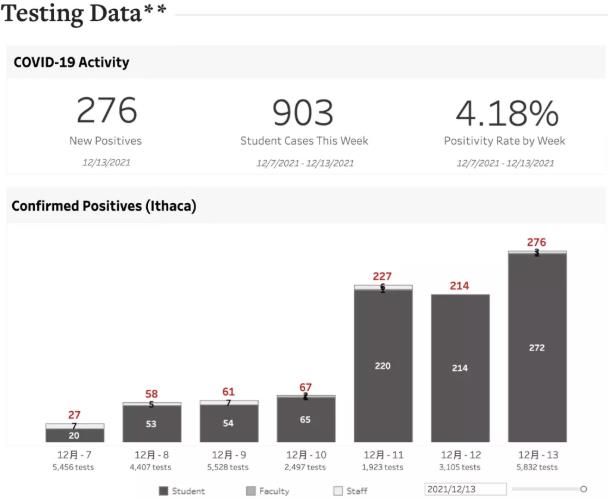 根据康奈尔官网发布的消息,近期COVID-19在学生群体中快速传播。12月11日-13日,康奈尔校园内连续三天新增确诊病例数量超过200例。