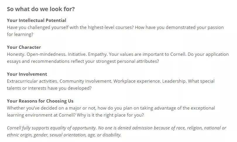 那么康奈尔大学究竟想要寻找什么样的学生呢?学校官网上给出了明确的答案: