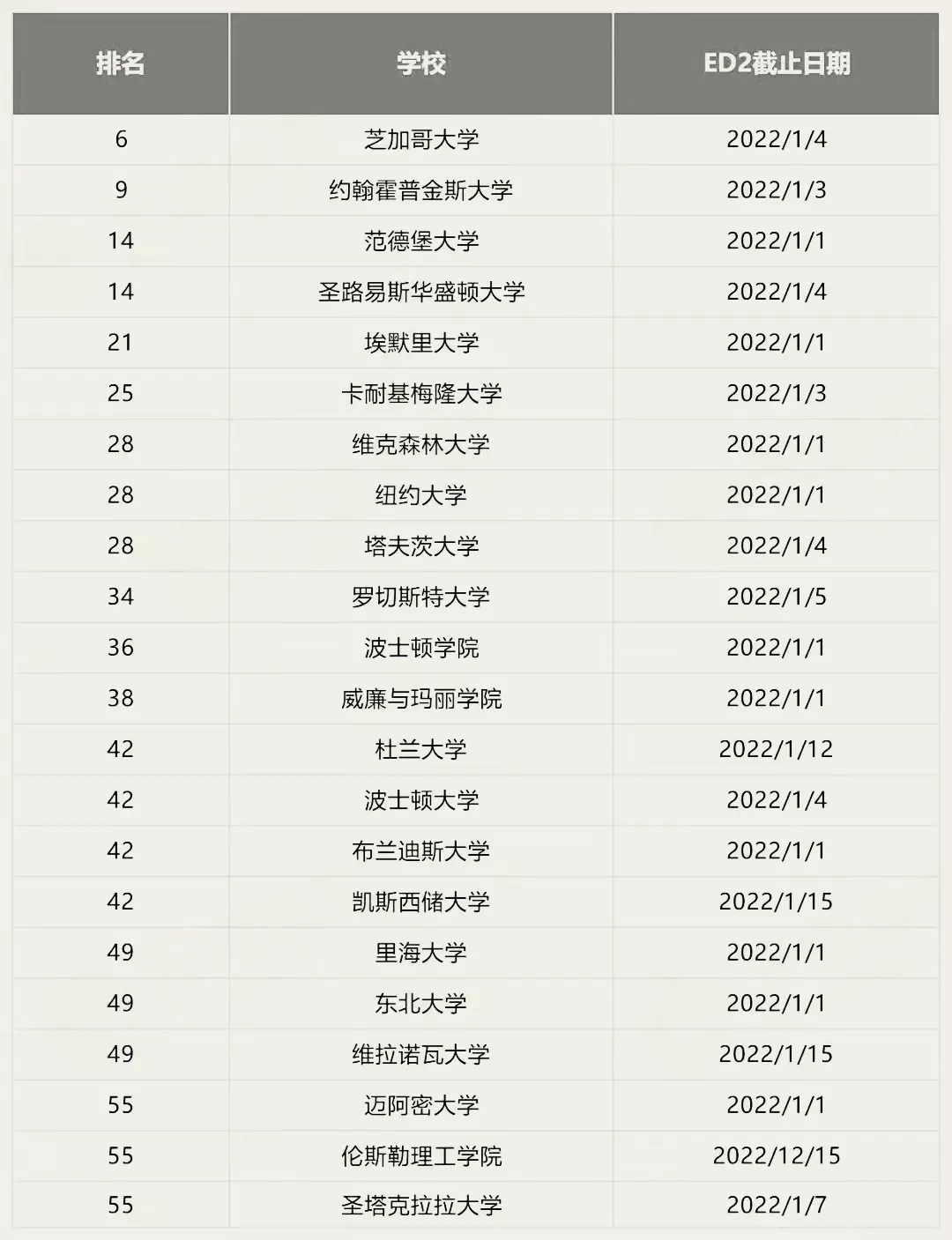 为什么要选择ED2/RD大部分ED2、RD还是1月1号截止,ED2和ED1一样如果录取了是一定要去。但ED1的结果12月中旬出,圣诞节前放榜。