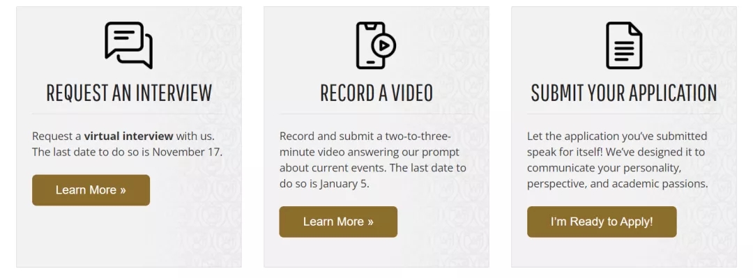 维克森林大学是一个重视学生好奇心、思想包容和开放的地方,提供视频面试、录制文书这种形式也是为了探索这一点。但是要注意只有申请2022Fall的高中生才有资格申请维克森林大学视频提交(video submission)。美国留学面试