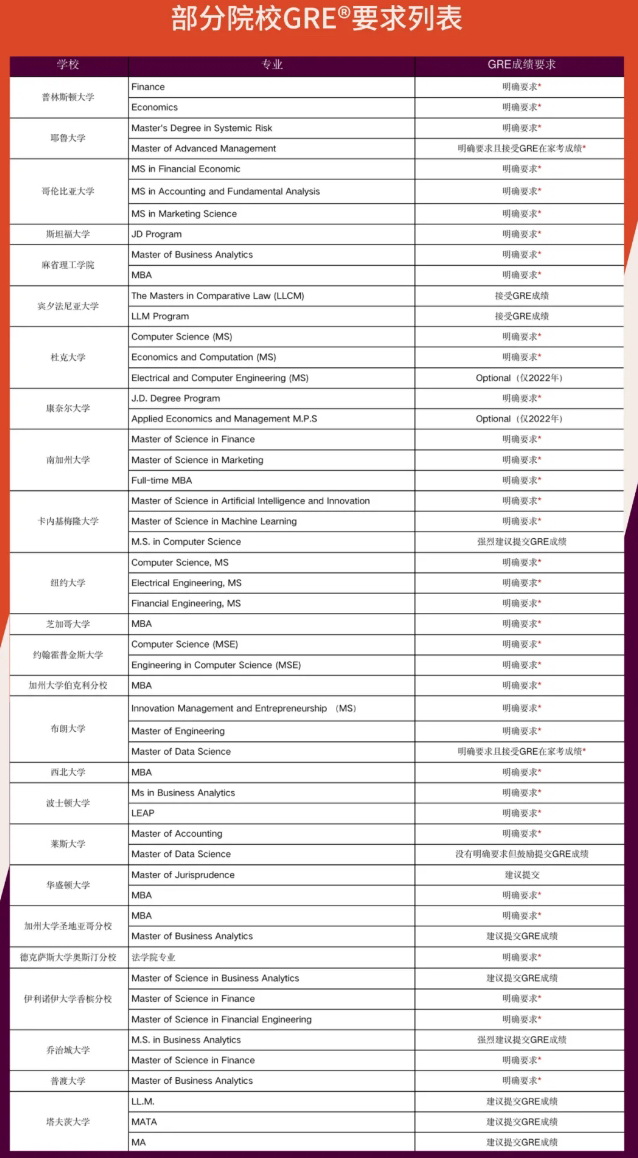 以下是ETS官方总结的部分院校对GRE成绩的要求,申请2022年秋季入学的同学务必实时追踪学校官网动态,避免错失重要信息哦!