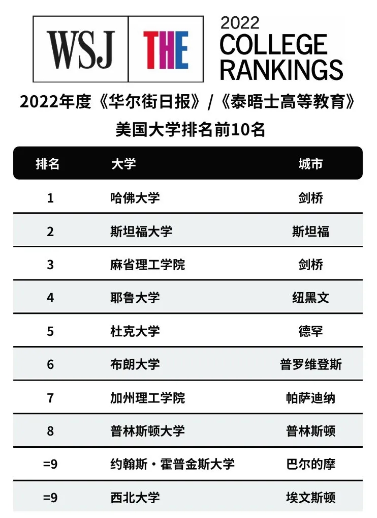 转载说明:文章《2022华尔街日报THE美国大学排名发布》由【岸帮留学】原创发布(部分转载内容均有注明出处,如有侵权请告知),转载请注明文章来源。