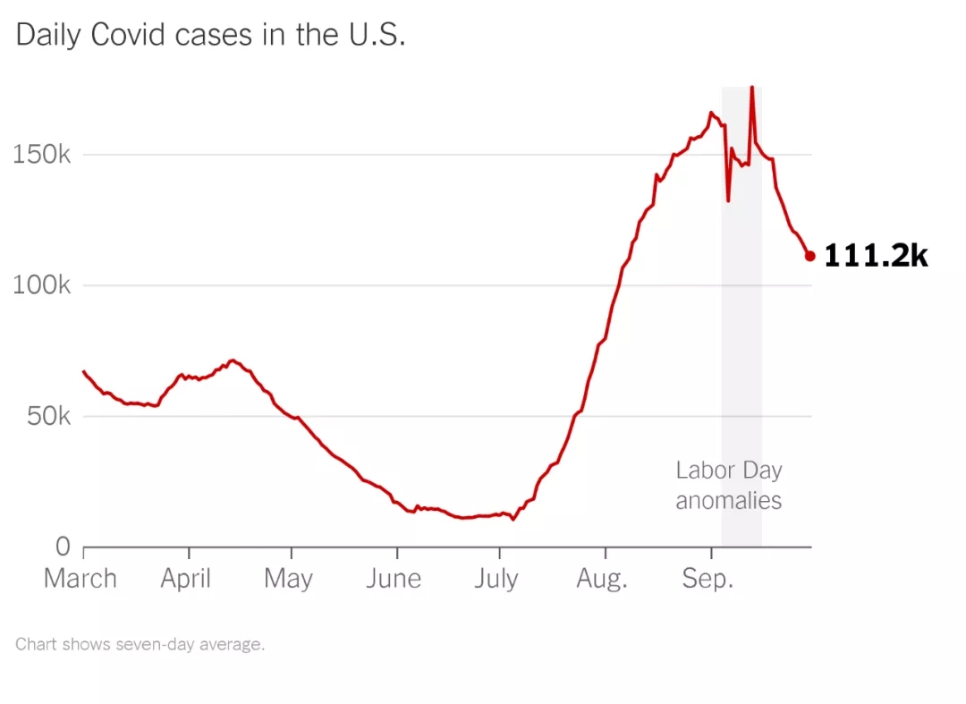 不仅如此,更鼓舞人心的消息是,新冠重症病例也在不断下降。自9月1日以来,因新冠住院的美国患者下降了约25%。而自9月20日以来,每日死亡人数也已经下降了10%。这是自初夏以来,美国疫情死亡人数的首次持续下降。