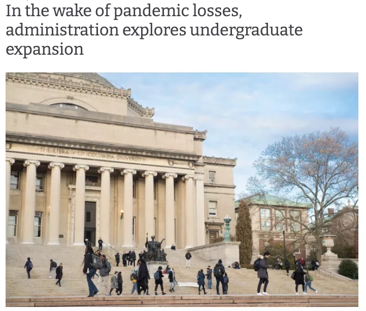 根据美国哥伦比亚大学校报的消息,哥伦比亚大学正在考虑扩招本科生。这一议案自2021年春季开始在学校高层内部讨论,有望在2022年招生季中落地。