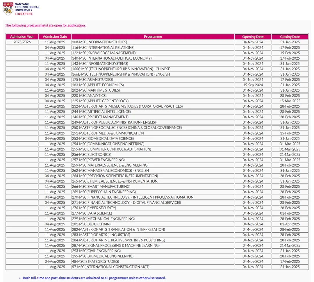 11月4日,南洋理工大学开放了秋季招生,截止日期都在明年1月底到3月之间,并且新增了三个热门的工程类专业,一起来看看吧。