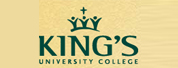 西安大略大学国王大学学院的学生在西安大略大学注册,并且接受西安大略大学国王大学学院的学分。西安大略大学国王学院的学生可选择参加任何国王学院,布雷舍尔或休伦学院开设的课程。所有的学位都由西安大略大学来授予。西安大略大学国王大学学院开设了许多专业,主要有:加拿大研究、天主教研究、天主教教师研究、经济、历史、犹太研究、管理与组织研究、现代语言、哲学、政治学、政治哲学和经济学、心理学、宗教学、社会正义与和平研究、社会工作、社会学、死亡学、世界宗教、金融与管理、金融与计算机、管理与商业研究、媒体信息和技术文化、全球与商务企业、机构与人力资源、文科与社会科学、儿童与家庭关系、健康科学、人体运动学、英语、法语、心理学、哲学、政治学、宗教研究、社会学