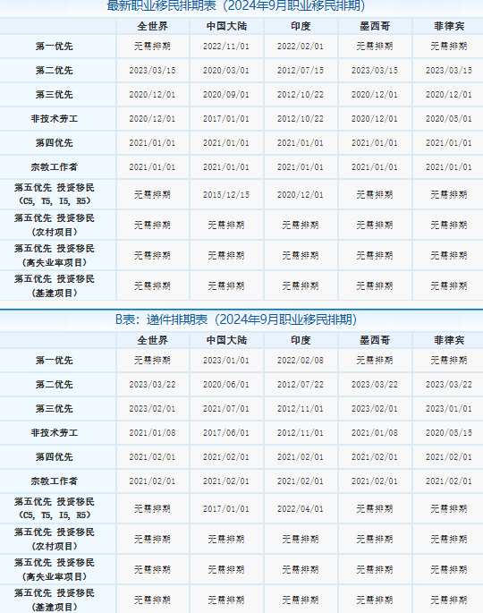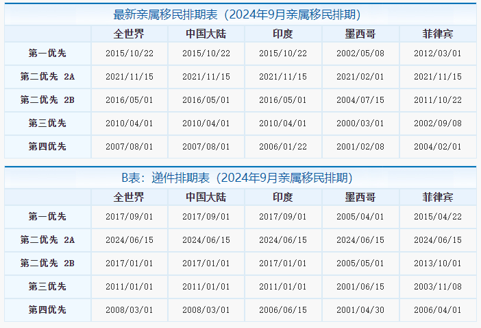 转载说明:文章《美国移民2024年9月美国职业移民亲属移民排期表》由【岸帮留学】原创发布(部分转载内容均有注明出处,如有侵权请告知),转载请注明文章来源。