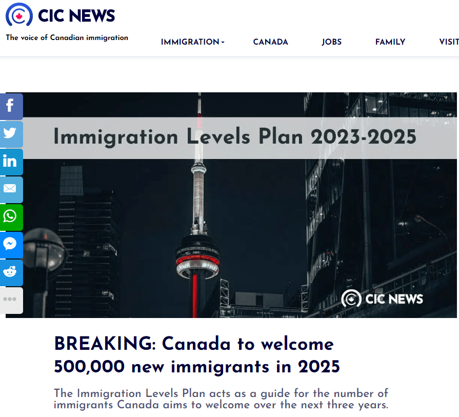 一、刷新了移民接收目标,未来三年接收145万新移民