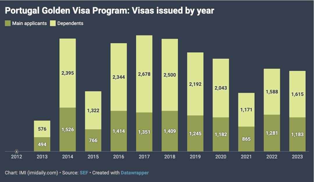 2023年迄今为止,葡萄牙移民局已经批准了1183个申请,总投资额为5.64亿欧元。
