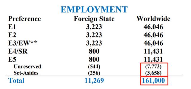 Employer Sponsored 雇主担保移民:36825个,增加了1825个名额