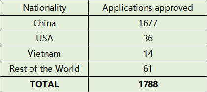 爱尔兰司法部部长Helen McEntee公布了爱尔兰最新的投资移民获批数据!数据显示,超94%申请获批的家庭来自中国(1677组),位居第一。排在第二的则是美国(36组);越南(14组);其他国家(61组)。