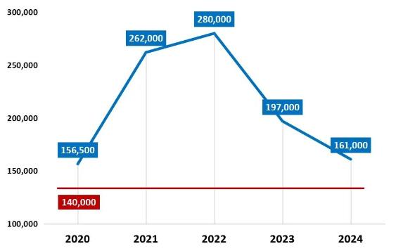 2024年,该国的目标是接纳48.5万新移民,在2025年和2026年,加拿大每年将迎来50万新移民。