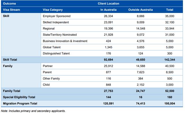 2022-2023财年澳洲移民中,澳洲共发出195,004个PR签证。
