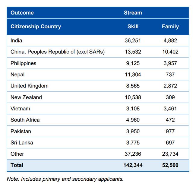 2022-2023财年,印度是澳洲移民的最大来源国,中国位居第二,紧接着是菲律宾、尼泊尔、英国以及新西兰。