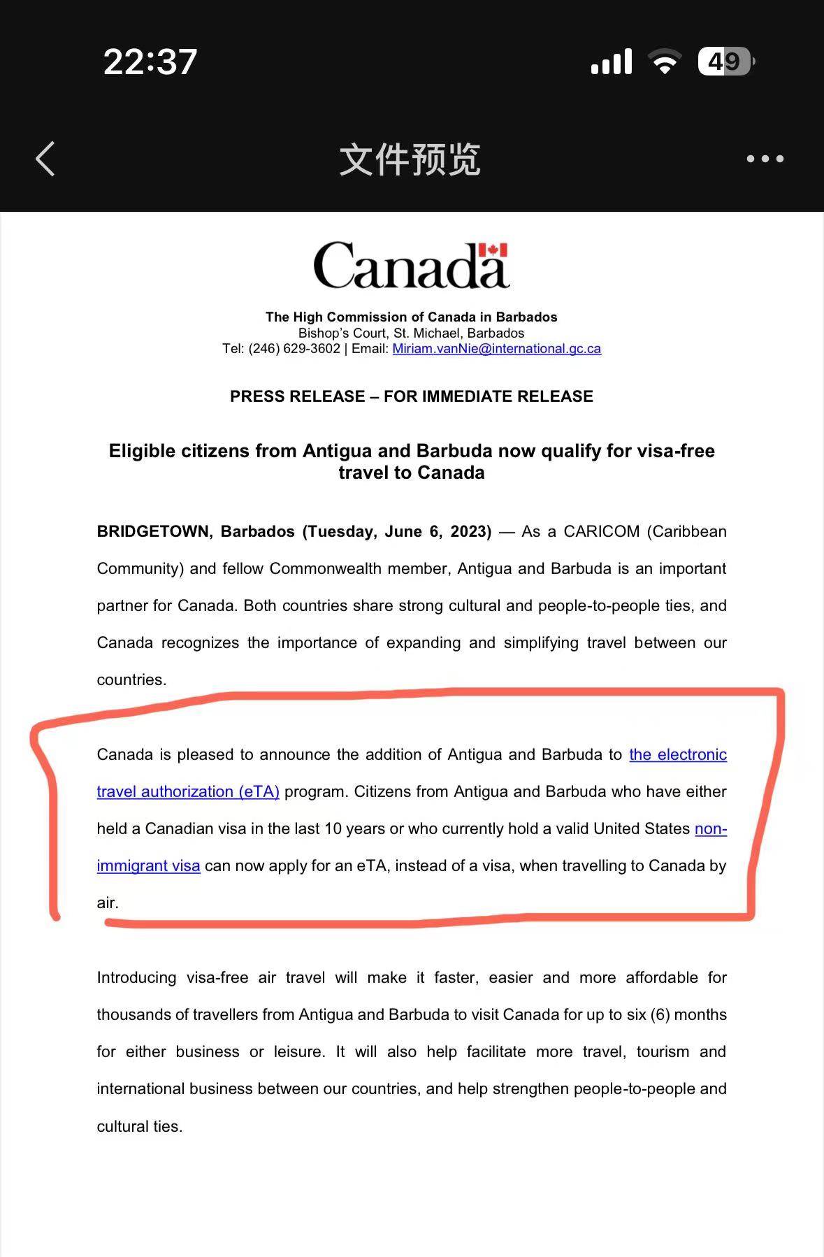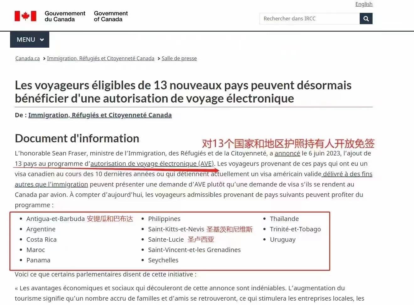 加拿大当地时间2023年6月6日,加拿大移民部长宣布,新增13个国家纳入电子旅行证计划, 可以申请ETA、无需签证。