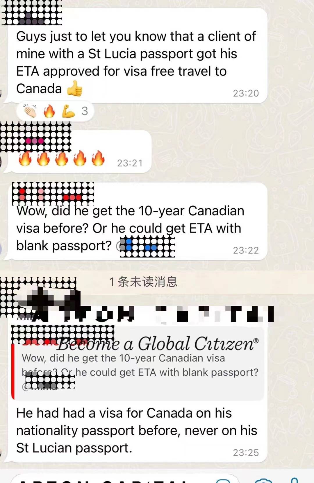 已经有成功案例了,申请人持有的是白本圣卢西亚护照。
