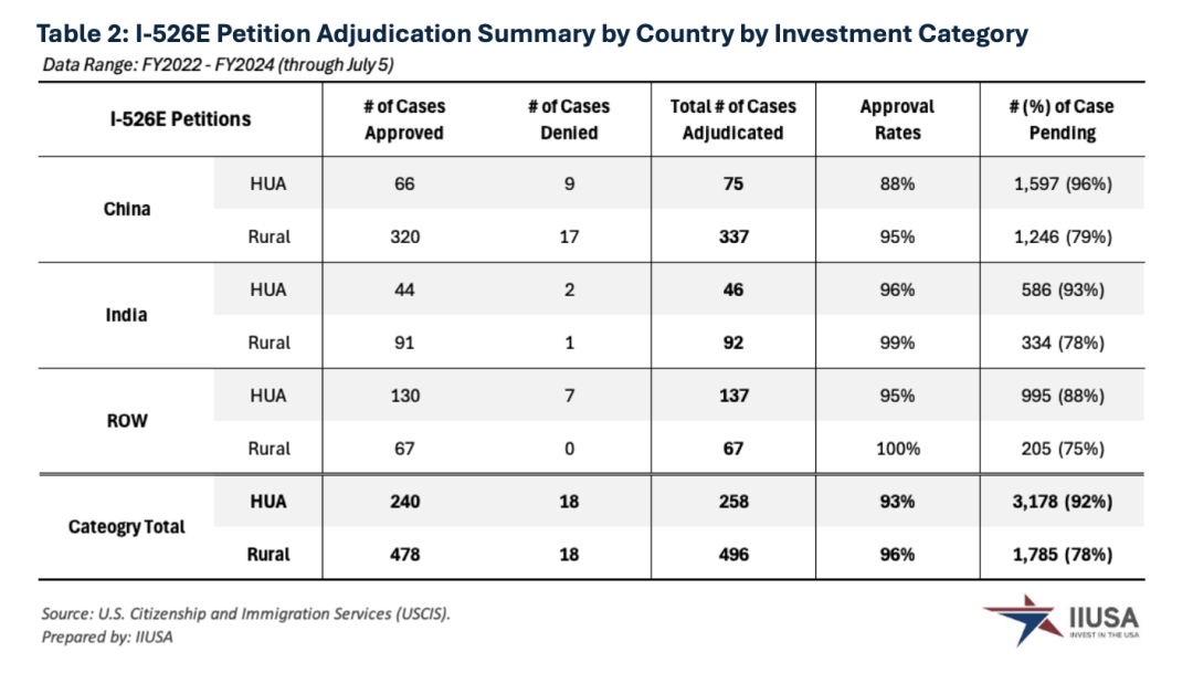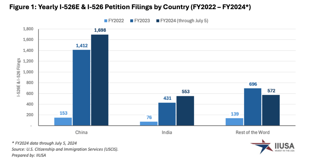 最新公布的数据来自IIUSA通过《信息自由法》所获得,数据涵盖自2022财年(2021年10月1日)至2024年7月5日的I-526、I-526E递交、审批、撤回以及趋势的全面分析。