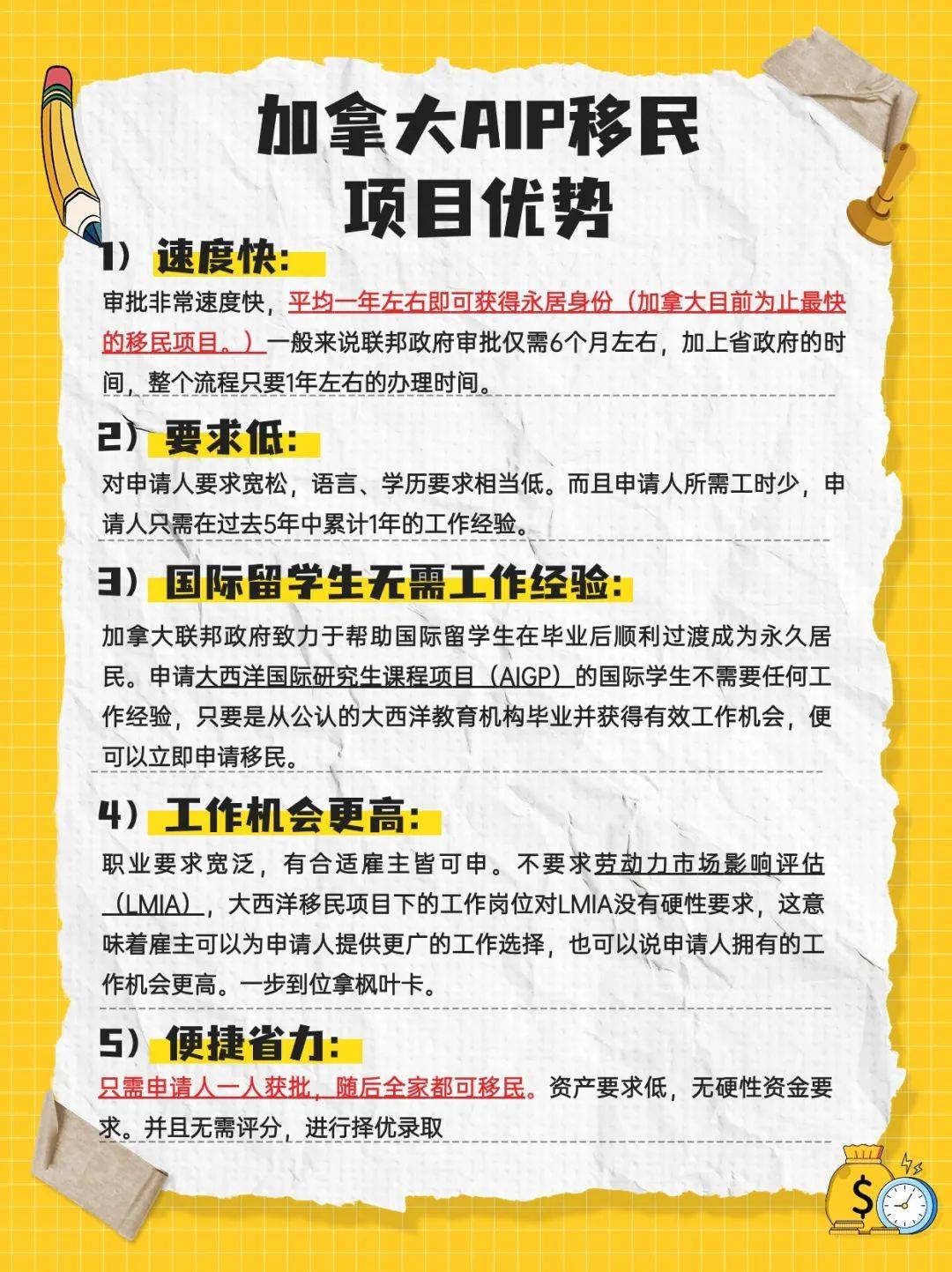 4)工作机会更高:职业要求宽泛,有合适雇主皆可申。不要求劳动力市场影响评估(LMIA),大西洋移民项目下的工作岗位对LMIA没有硬性要求,这意味着雇主可以为申请人提供更广的工作选择,也可以说申请人拥有的工作机会更高。一步到位拿枫叶卡。